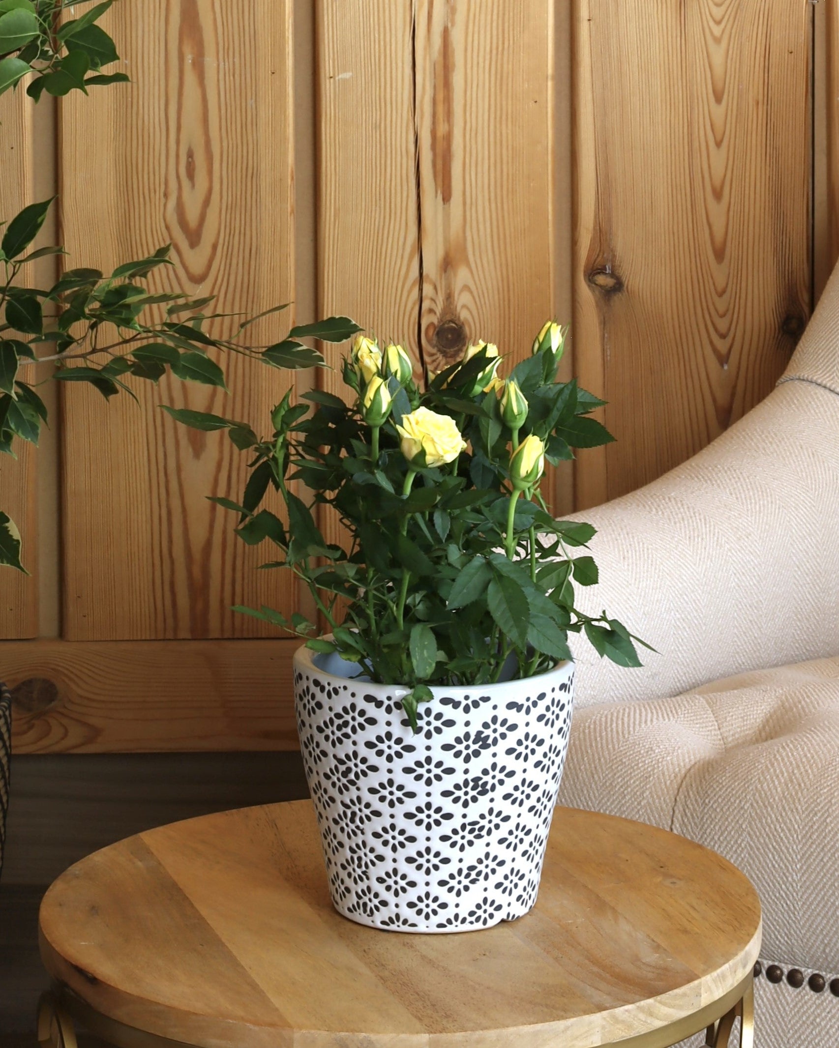 This yellow flowering rose plant is the perfect addition for those looking to bring bright colors and positive energy into their spaces while being easy to care for.